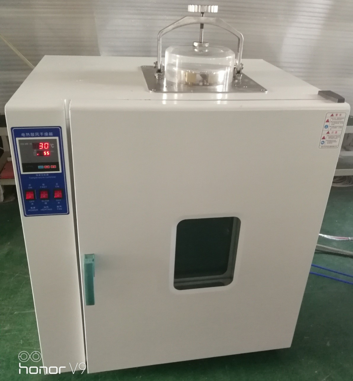 恒温透明引燃试验槽主要由被试电极(含被试小元件表面温度检测温度传感器)、标校电极(含标校元件表面温度检测温度传感器)、预热电极、检测试验槽内气体温度的温度传感器、检测试验槽内气体压力的压力传感器、火花塞、金属底板、透明容器罩、容器罩压紧机构、电加热恒温箱、进气管路、出气管路、二乙醚注入口等组成。所有电极、传感器均从金属底板下方引出,分别采用阻燃导线引至被试电极电路、标校电极电路、火花塞及各种传感器,所有进、出气管路均从金属底板下方引出。所有导线均连接至加热恒温箱右侧面的航空插座,所有管路均连接至加热恒温箱右侧面的快插气接头。