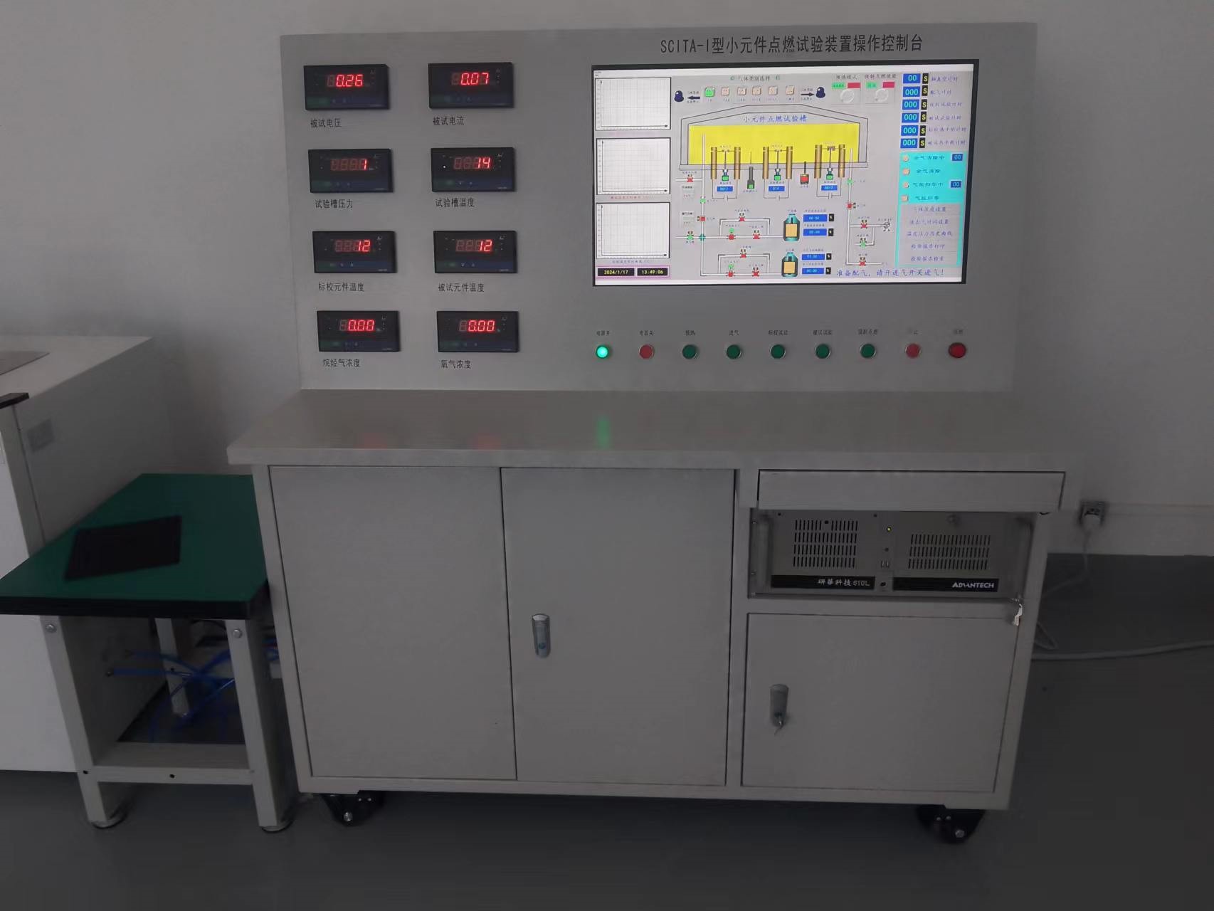 SCITA-I型小元件点燃试验装置主要由操作控制台和恒温透明引燃试验槽两部分组成,现场辅助设备主要为二乙醚注入器、高纯甲烷罐和零级空气罐。